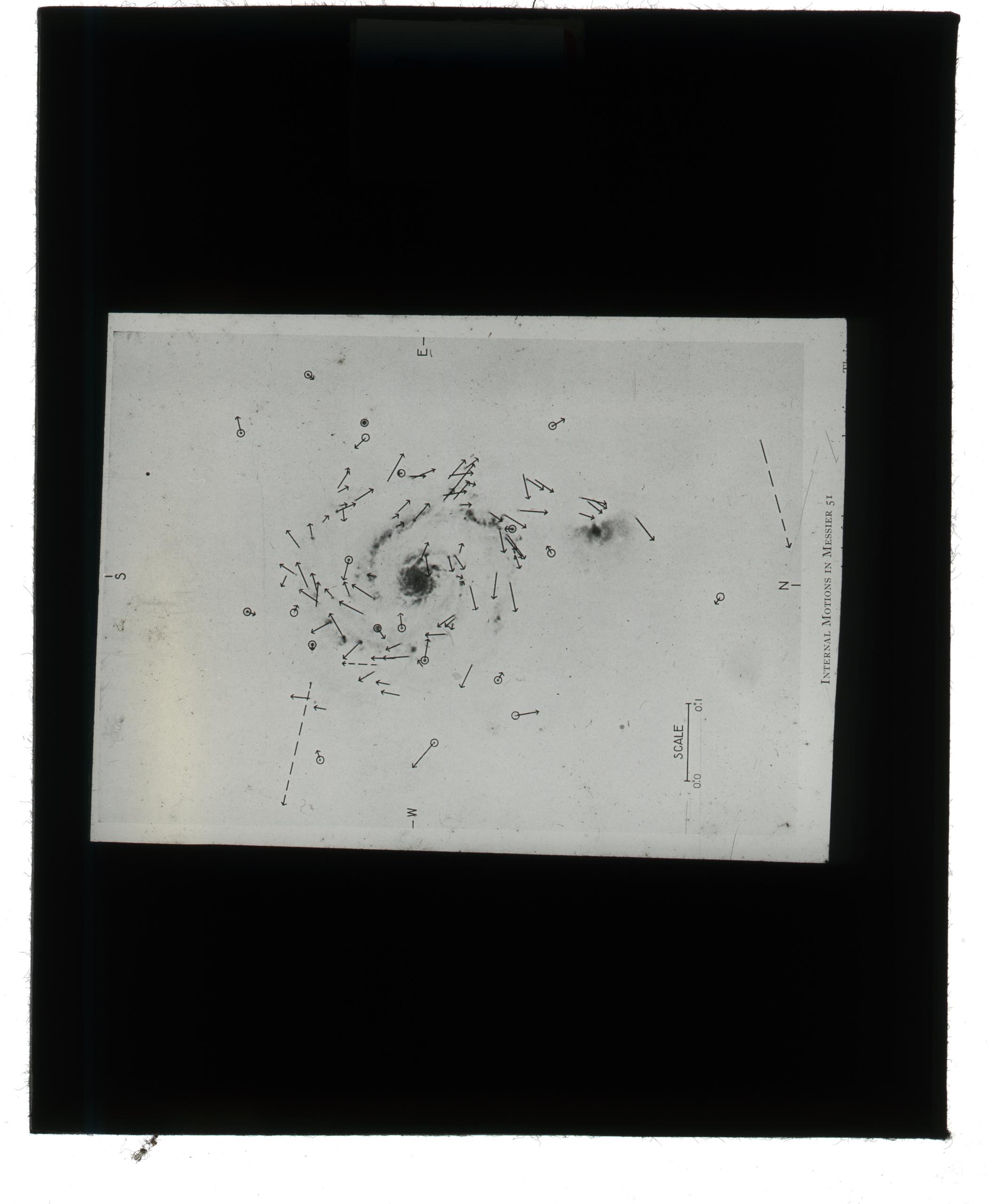 This is a teaching slide showing the motion of objects within the Whirlpool Galaxy, also known as Messier 51a (M51a) or NGC 5194.